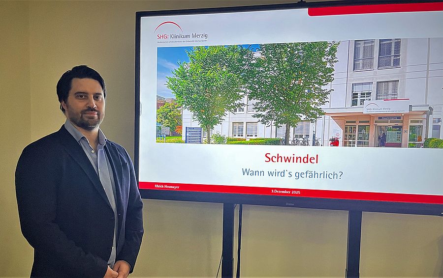 Beim Patienteninformationsabend im SHG‑Klinikum Merzig widmete sich Oberarzt Ulrich Neumayer, Klinik für Neurologie mit Stroke Unit, Früh-Reha und Schmerzklinik, genau diesem Thema: Was passiert beim Schwindel im Körper? Welche Formen gibt es? Und vor allem – wann wird es gefährlich?