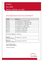 Der neun monatige Kurs umfasst insgesamt 340 Stunden. Die Unterrichtsmodule werden in Blockwochen mit einer täglichen Unterrichtszeit von 8.15 Uhr bis 15.30 Uhr angeboten.