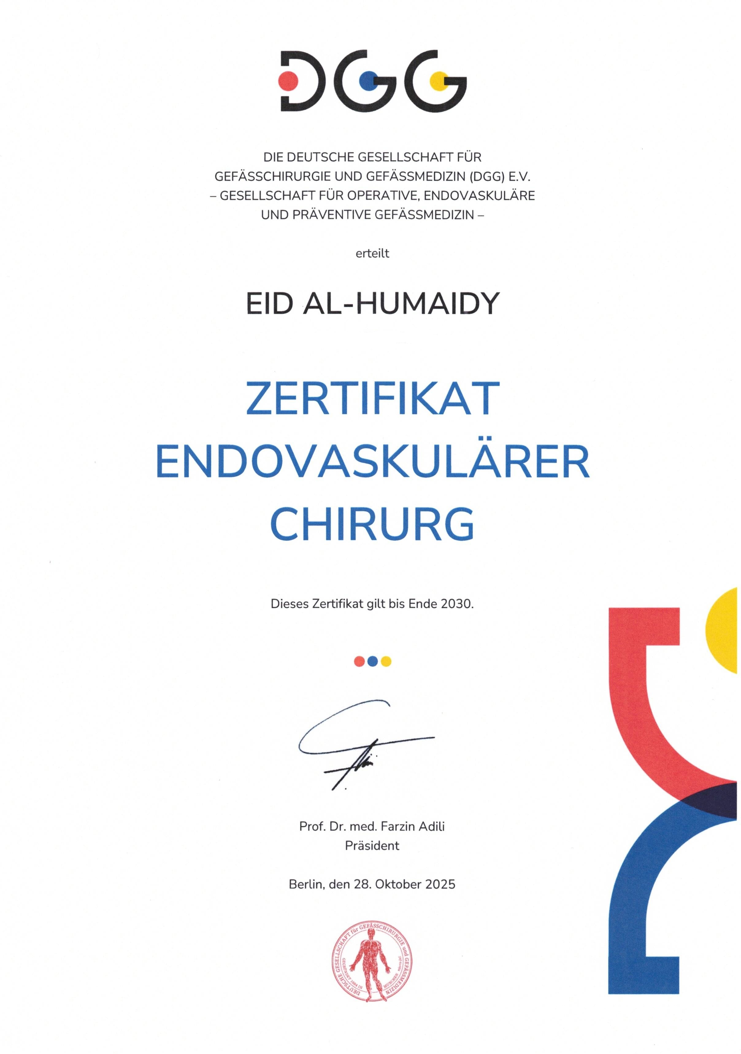 Weitere Qualifikation: Endovaskulärer Chirurg
