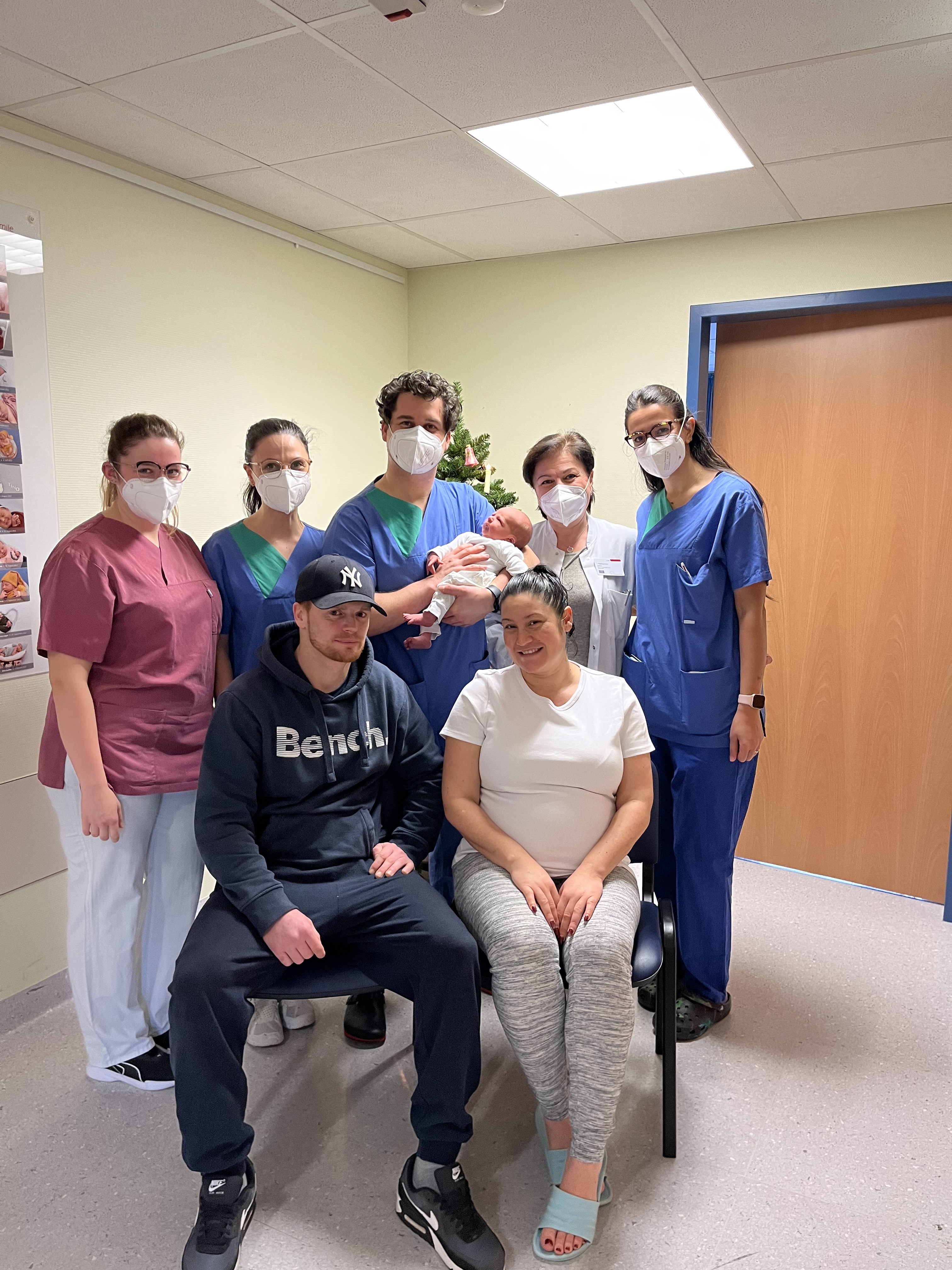 Idar-Oberstein. Das neue Jahr war noch keine anderthalb Stunden alt, als der kleine Jake-Dylan Smith um 1.17 Uhr im Klinikum Idar-Oberstein als erstes Kind des Jahrganges 2023 geboren wurde. Damit hat der neue Erdenbürger seinen Eltern Sabrina Artavia-Jungblut und Steven Smith direkt eine große Freude bereitet. Der Junge kam mit einem Gewicht von 3505 Gramm und einer Körperlänge von 52 Zentimetern zur Welt. Gemeinsam mit den glücklichen Eltern freuten sich neben Chefärztin Izampella Papadopoulou auch die betreuende Hebamme Ann-Kathrin Fels, die Assistenzärztinnen Nora Strack und Inara Bayramova und ihr Assistenzarztkollege Felipe Bejar-Recalde über das Neujahrsbaby. Das gesamte Kreißsaalteam um Chefärztin Izampella Papadopoulou freut sich schon jetzt auf viele weitere neugeborene Babys im neuen Jahr. 2022 konnte das Team auf insgesamt 658 Geburten zurückblicken.