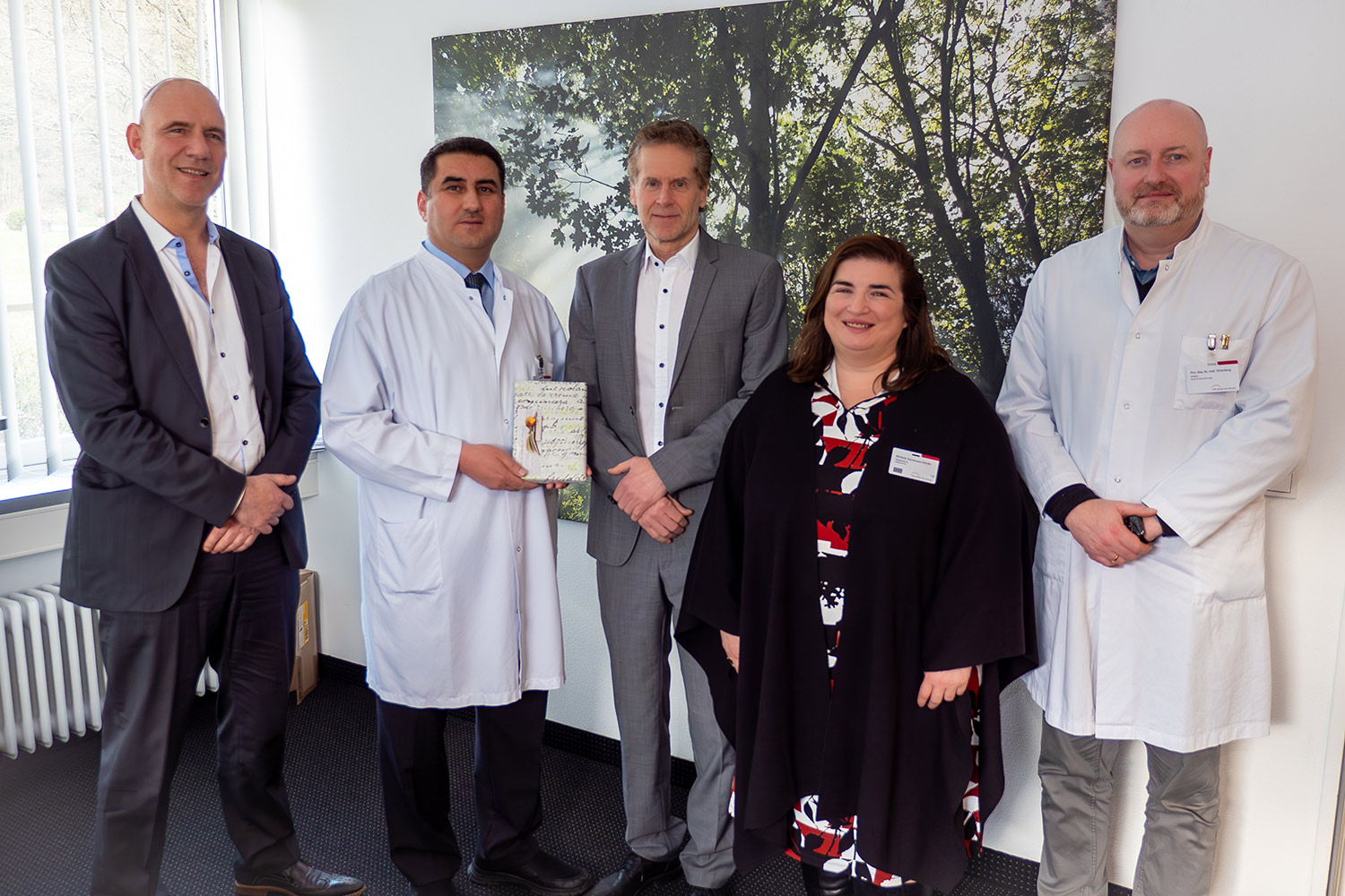 Die Vertreter der Klinikleitung begrüßten Khaldoun Odat Allh jetzt offiziell in der Runde der Chefärzte und hießen ihn herzlich willkommen. „Wir danken Herrn Odat Allh herzlich für die Übernahme der Interimsleitung der urologischen Klinik und gratulieren ihm zu seiner Berufung in die Chefarztfunktion“ freut sich der Stellvertretende Verwaltungsdirektor Achim Schütz.