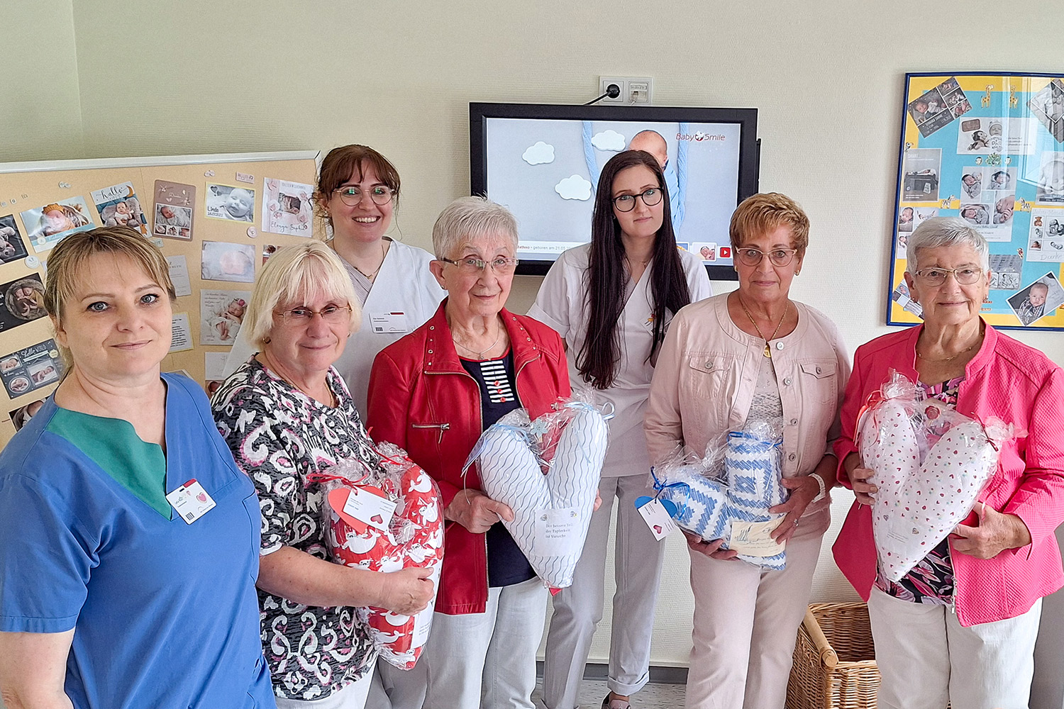Idar-Oberstein. Die Selbsthilfegruppe „Krebserkrankter Frauen Idar-Oberstein“ hat das Team der Klinik für Gynäkologie und Geburtshilfe des Klinikums Idar-Oberstein erneut mit einer großzügigen Spende bedacht. Erni Weber, Rosi Schramm, Brigitte Schuch und Karla Schüßler, engagierte Mitglieder der Gruppe, haben nicht nur liebevoll rund 30 Paar gestrickte Söckchen und 15 Mützchen für die Neugeborenen auf Station 35 angefertigt, sondern auch weiterhin Herzkissen für Brustkrebspatientinnen genäht. Über viele Jahre hinweg spendet die Gruppe bereits regelmäßig.