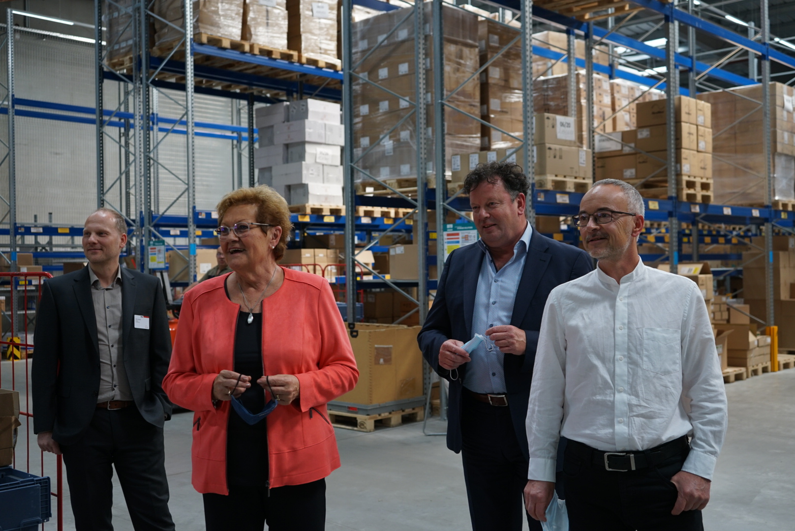 Wirtschaftsministerin Rehlinger: „Bei der Apolog GmbH arbeiten die Menschen, die wir zwar als Patientinnen und Patienten nicht zu Gesicht bekommen, ohne die aber unser Gesundheitssystem nicht funktionieren könnte: Das Logistikzentrum beliefert saarländische Krankenhäuser, Alten- und Pflegeheime, aber auch alle weiteren Einrichtungen des Gesundheitswesens und gewährleistet so die medizinische Versorgung der Bevölkerung. Damit entlasten sie Pflegerinnen und Pfleger und ermöglichen deren lebenswichtige Arbeit. Es ist ein gutes Zeichen für unser Gesundheitssystem, dass das Unternehmen im Saarland weiter wachsen möchte – gerade in Krisenzeiten.“