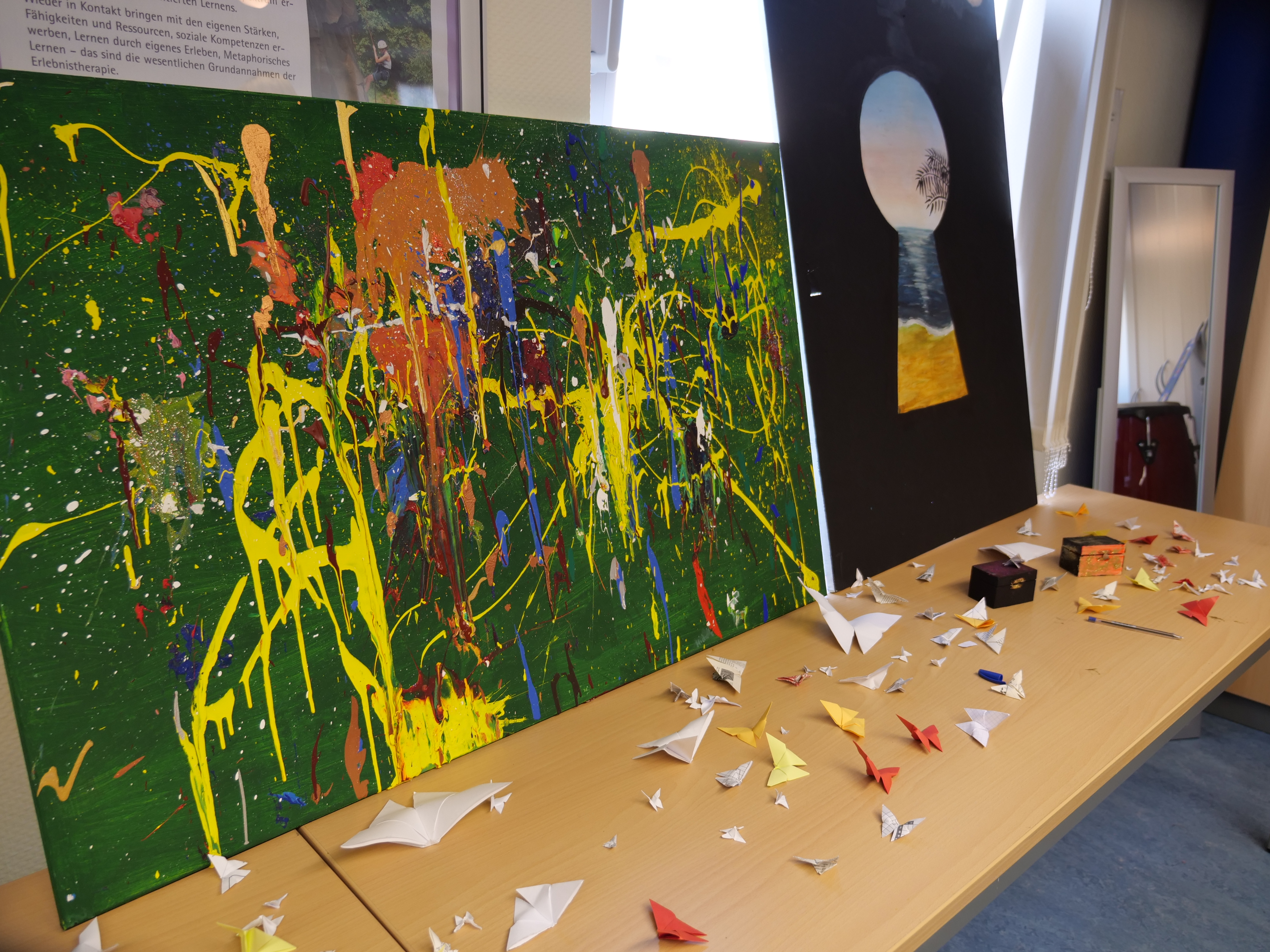 Beeindruckend waren die Vielfalt und Kreativität an Exponaten, die die Kinder und Jugendlichen in ihrer Therapie geschaffen haben. Außerdem wurde die Vernissage durch eigens komponierte Klaviermusik einer Jugendlichen untermalt, welche alle Anwesenden faszinierte.