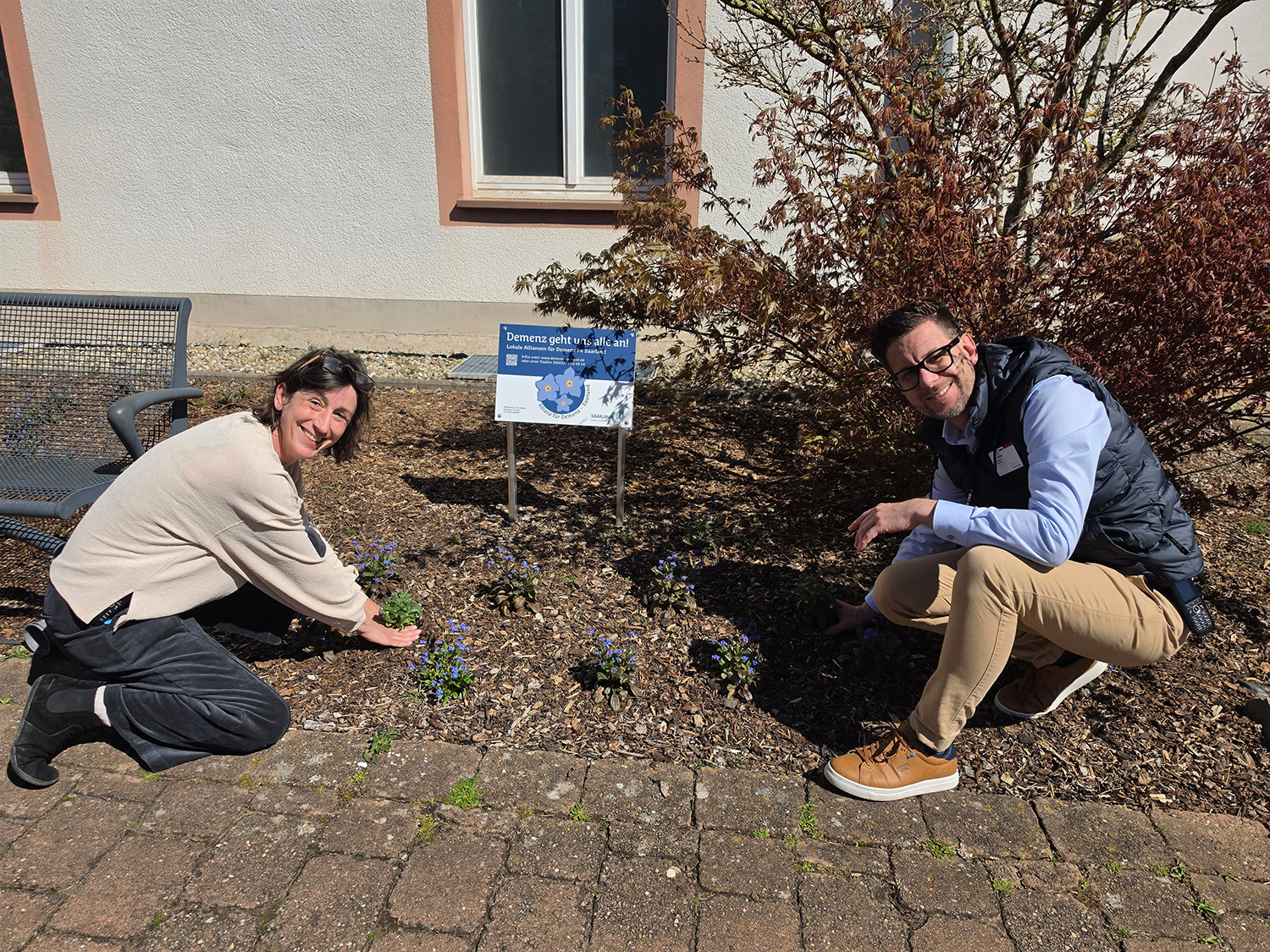 50 Vergissmeinnicht-Pflanzen wurden vom Oberbürgermeister der Stadt Merzig, Marcus Hoffeld, bereitgestellt und finden nun ihren Platz im Garten des Bistros des Gesundheitscampus. Die blauen Blüten stehen nicht nur für den Frühling, sondern symbolisieren das Anliegen der Demenz-Bewusstseinsarbeit: Aufmerksamkeit, Wertschätzung und eine klare Botschaft, dass die Bedürfnisse von Menschen mit Demenz auch in Klinikalltag und Gesellschaft sichtbar sind. Die Pflanzaktion war ein gemeinschaftliches Ereignis, das Begegnung, Austausch und ein Miteinander in den Vordergrund stellte.