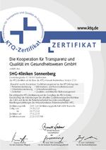Auf dieser Selbstbewertung aufbauend strebte die Klinik die Zertifizierung nach dem KTQ-Modell an. KTQ steht für Kooperation für Transparenz und Qualität im Gesundheitswesen und ist ein freiwilliges Zertifizierungsverfahren. Durch externe Visitoren wird das Qualitätsmanagement von Krankenhäusern bewertet. Erfolgreich stellten sich die SHG-Kliniken Sonnenberg erstmals diesem Verfahren im Jahr 2005. Seit dieser ersten Zertifizierung stellen sich die SHG-Kliniken Sonnenberg bis heute regelmäßig und erfolgreich den Re-Zertifizierungen.