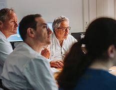 In unserem Herzzentrum arbeiten Kardiolog:innen, Herzchirurg:innen, Anästhesist:innen, Radiolog:innen und Intensivmediziner:innen täglich Hand in Hand – bei gemeinsamen Fallbesprechungen, OP-Planungen und in der Nachsorge.