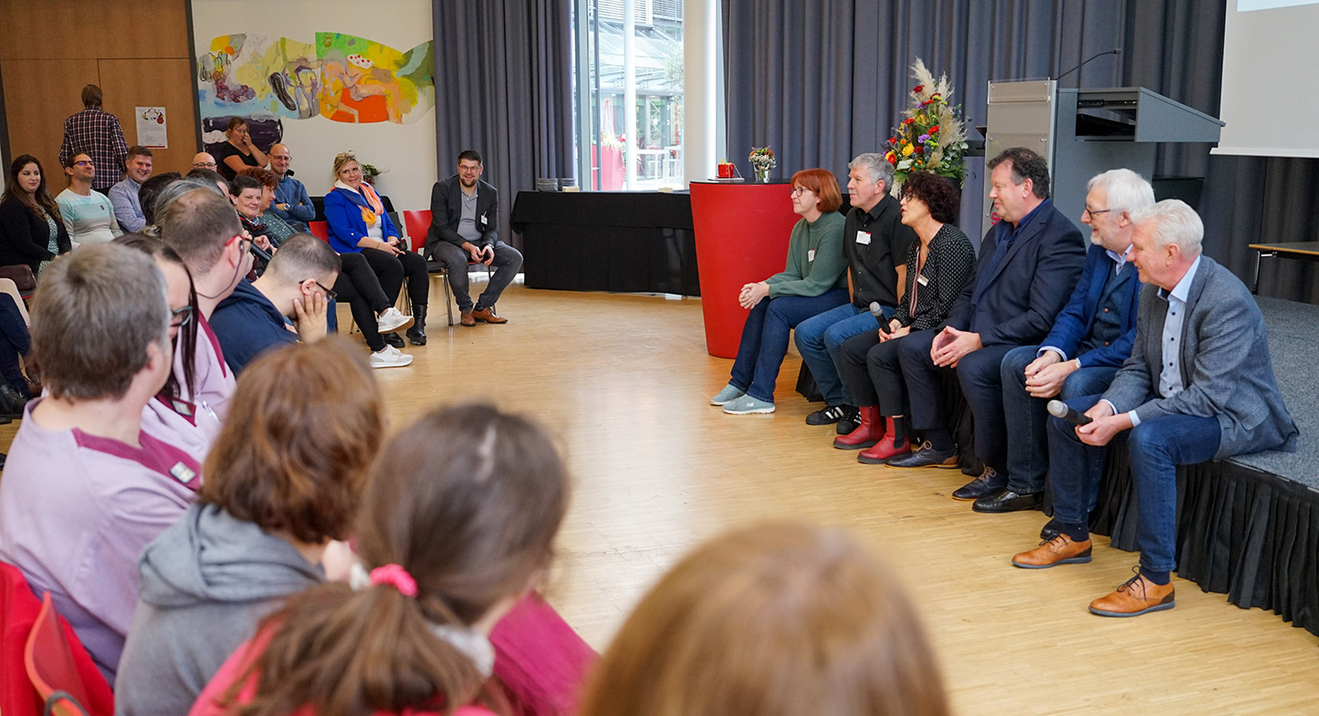 Neben Verwaltungsdirektor Edgar Mertes dankte auch SHG-Geschäftsführer Bernd Mege den 15 Werkstattmitarbeitern: „Sie leisten wertvolle Arbeit und erledigen diese in exzellenter Art und Weise". Bei der Tätigkeit handelt es sich um eine öffentlich geförderte Maßnahme zur Integration behinderter Menschen in die Arbeitswelt, die durchaus als beispielhaft gelten kann. Oliver-Marc Bungert, Direktor der AWO im Bereich Teilhabe, bedankte sich bei der SHG für die gute Zusammenarbeit und würdigte die Projektteilnehmer als „hervorragende Botschafter unserer AWO und all Ihrer Kolleginnen und Kollegen in den Werkstätten“.